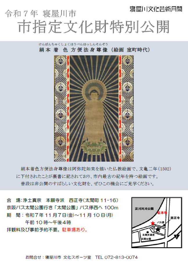 市指定文化財「絹本着色方便法身尊像」(浄土真宗本願寺派 西正寺蔵)の特別公開を開催します
