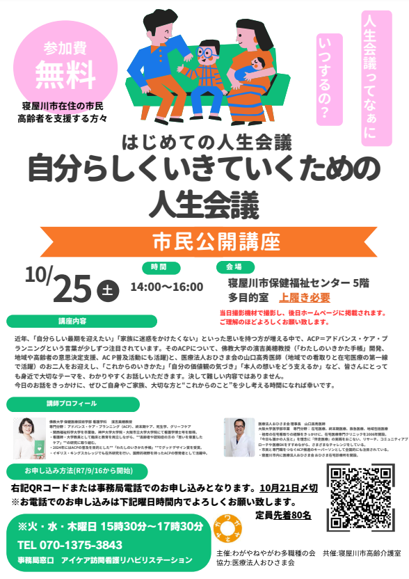 【初開催】寝屋川市でACP(アドバンス・ケア・プランニング)をテーマにした講演会を開催します!