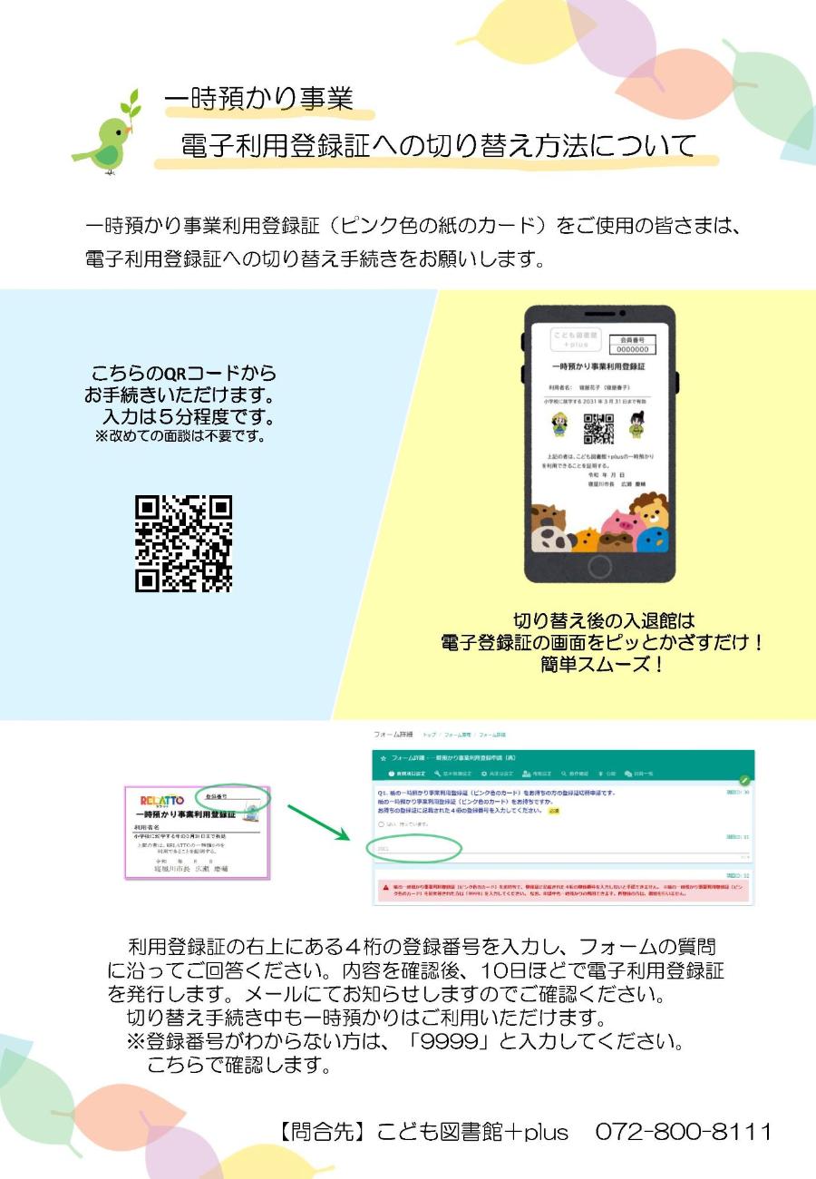 一時預かり事業利用登録証(ピンク色の紙のカード)をご使用の皆さまは、電子利用登録証への切り替え手続きをお願いします。