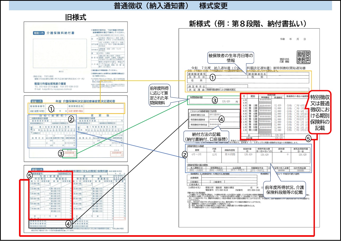 令和7年10月から国標準準拠システム移行により介護保険システムの仕様変更を行うことから、介護保険料決定通知書等の様式が変更となります。