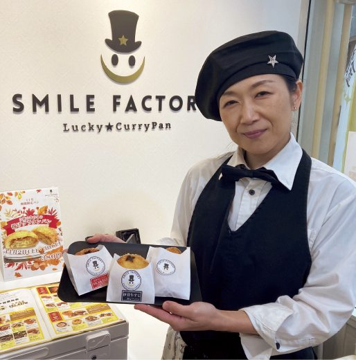 地元の飲食店に勤める料理人を店長に迎え、令和5年3月、カレーパンと揚げパンの専門店「スマイルファクトリー」をオープン。「花ちゃんのカレーパンを進化させた」という看板商品の「ラッキー★カレーパン」で西日本揚げカレーパン部門のエントリーにこぎつけました。