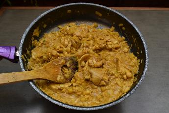 6. 5にbを加えて弱火で10分ほど煮込む。