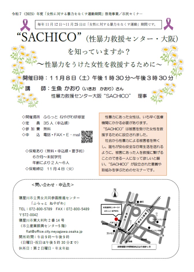 “SACHICO”(性暴力救援センター・大阪)を知っていますか?~性暴力をうけた女性を救援するために~
