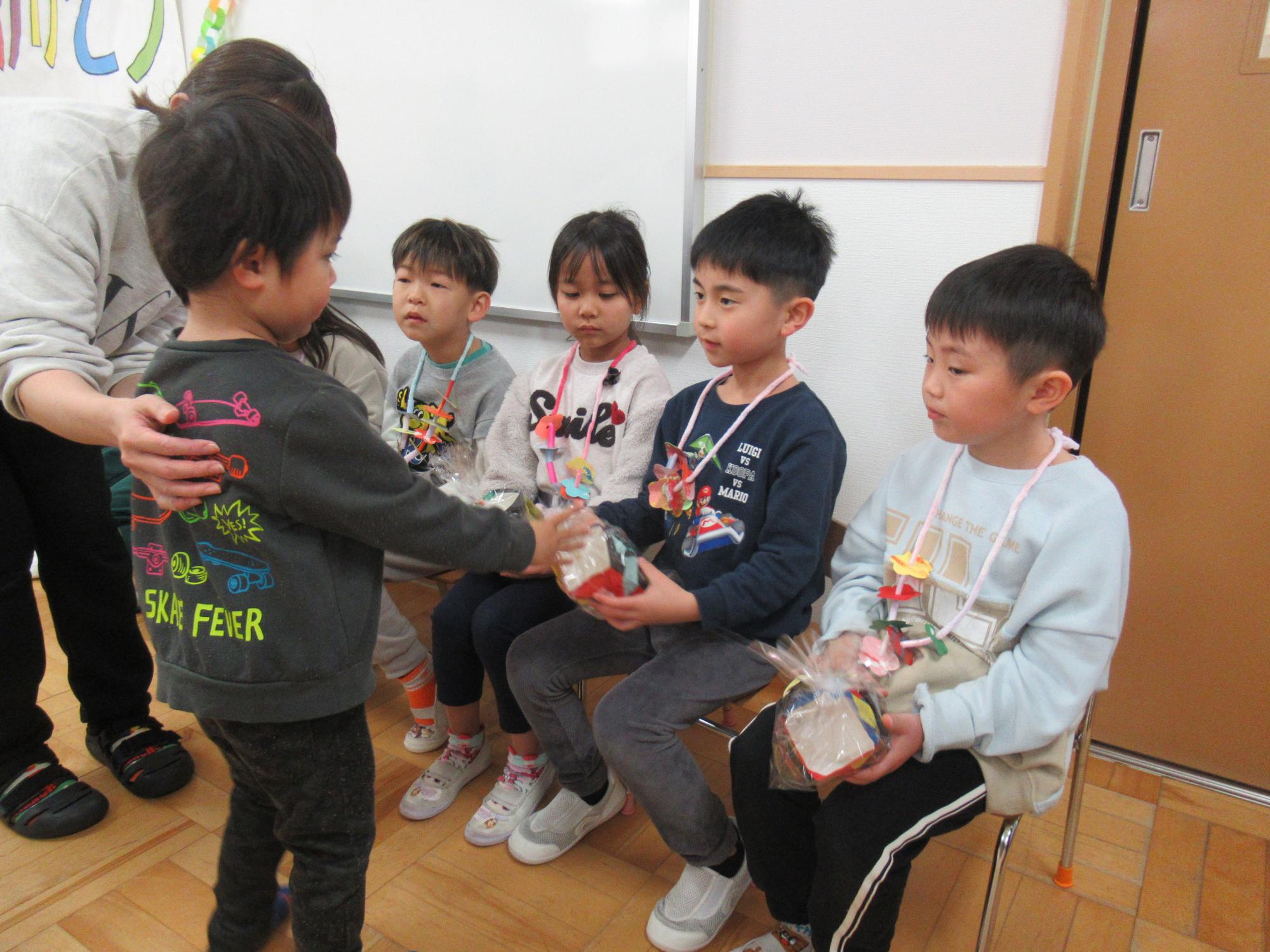 3歳児さんは手作りのペン立てと歌のプレゼントをしました♪