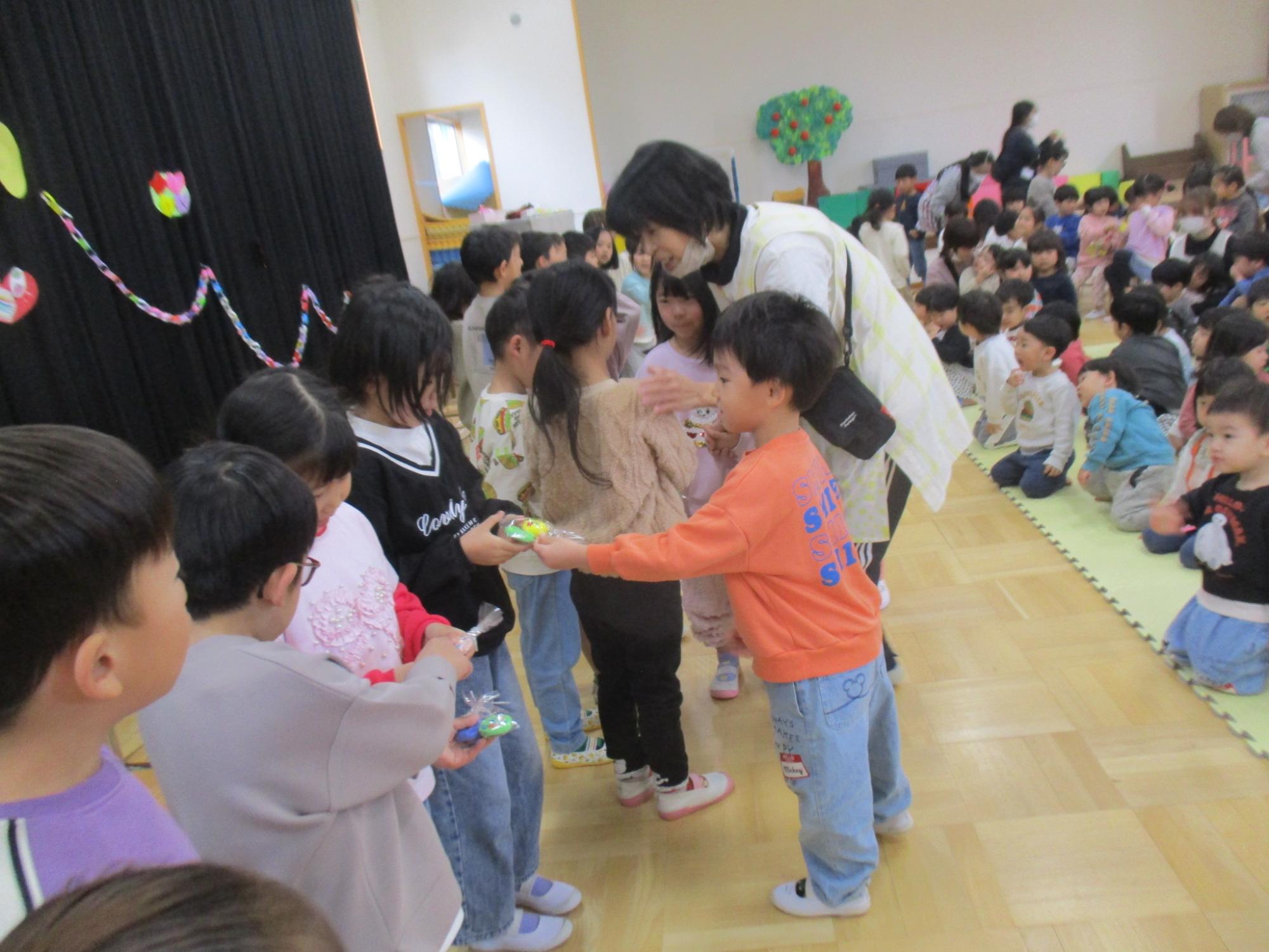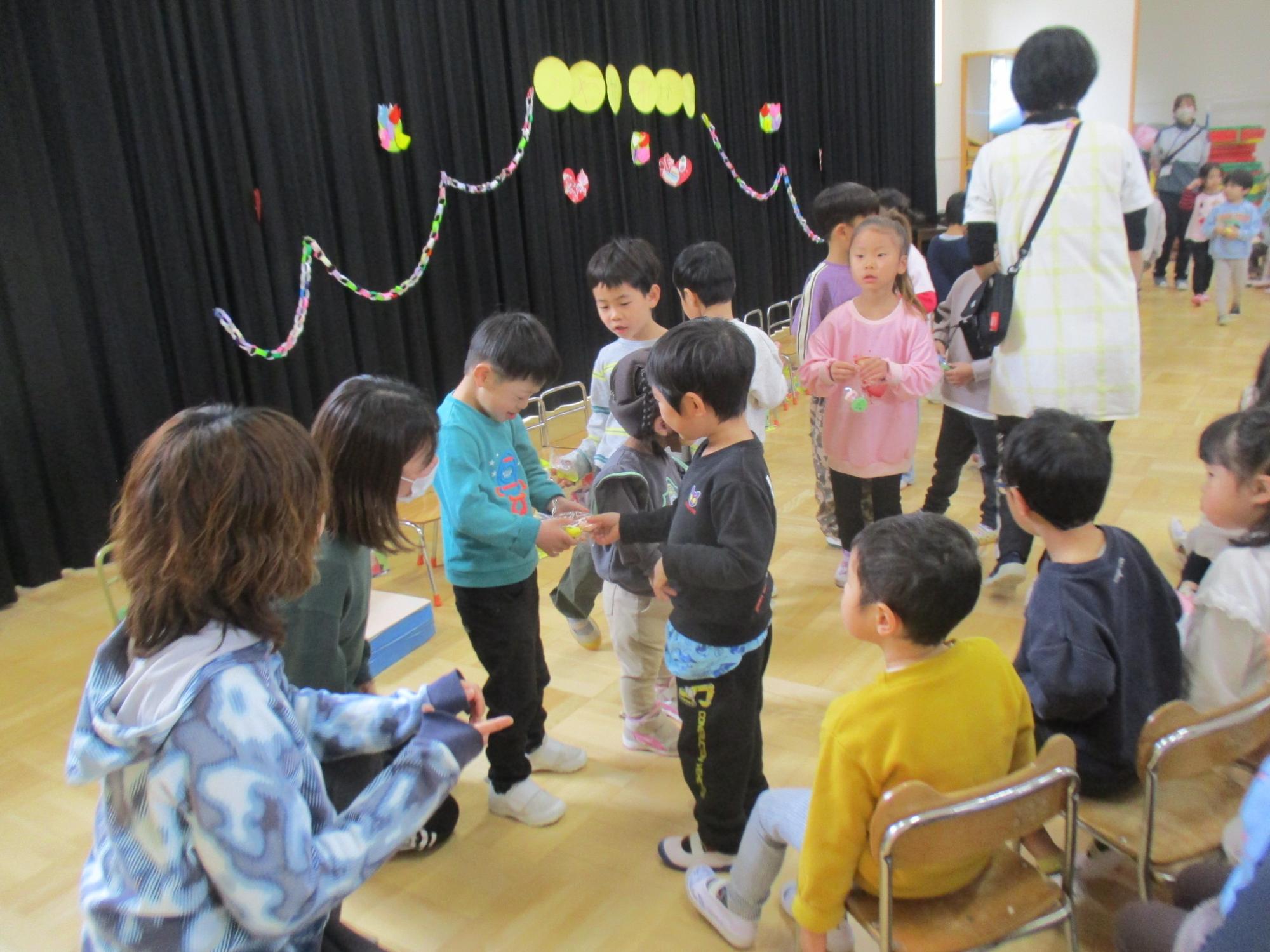 白組さんはみんなからプレゼントをもらい、修了のお祝いをしてもらいました。