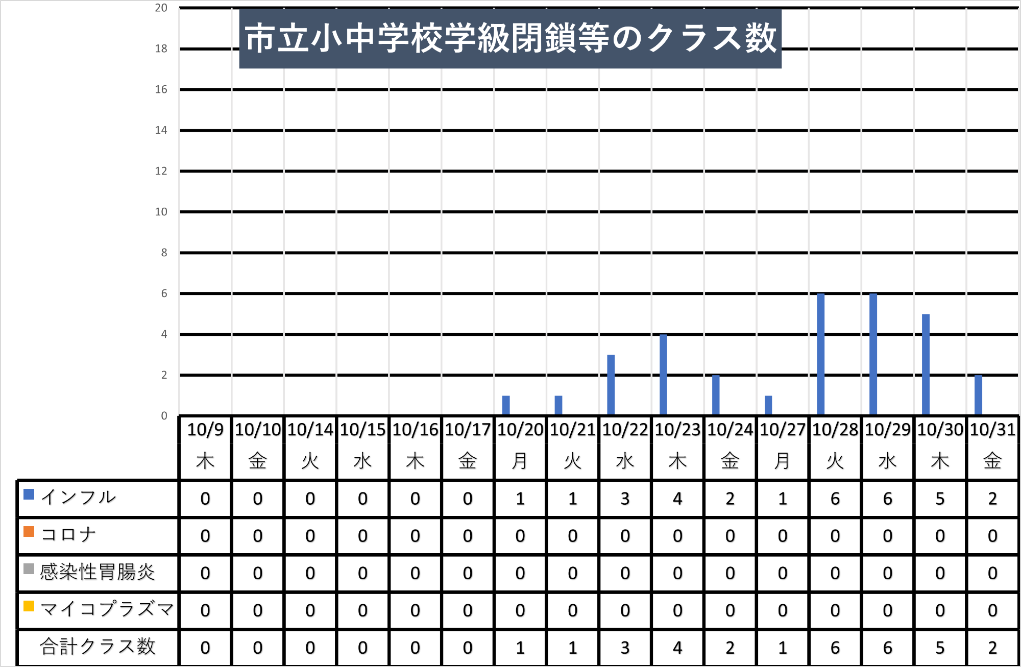 | 池田小学校 | 6年生 | 1クラス | インフルエンザ |