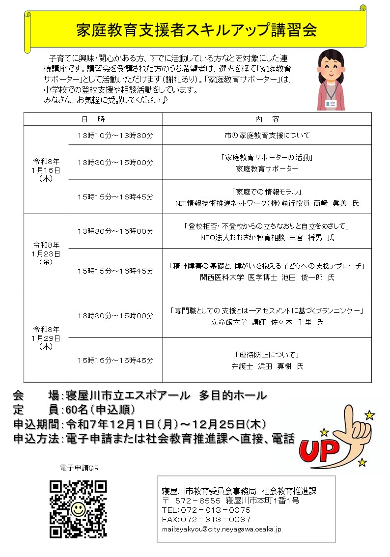 家庭教育支援者スキルアップ講習会へのお申込みは以下より申請ください。
