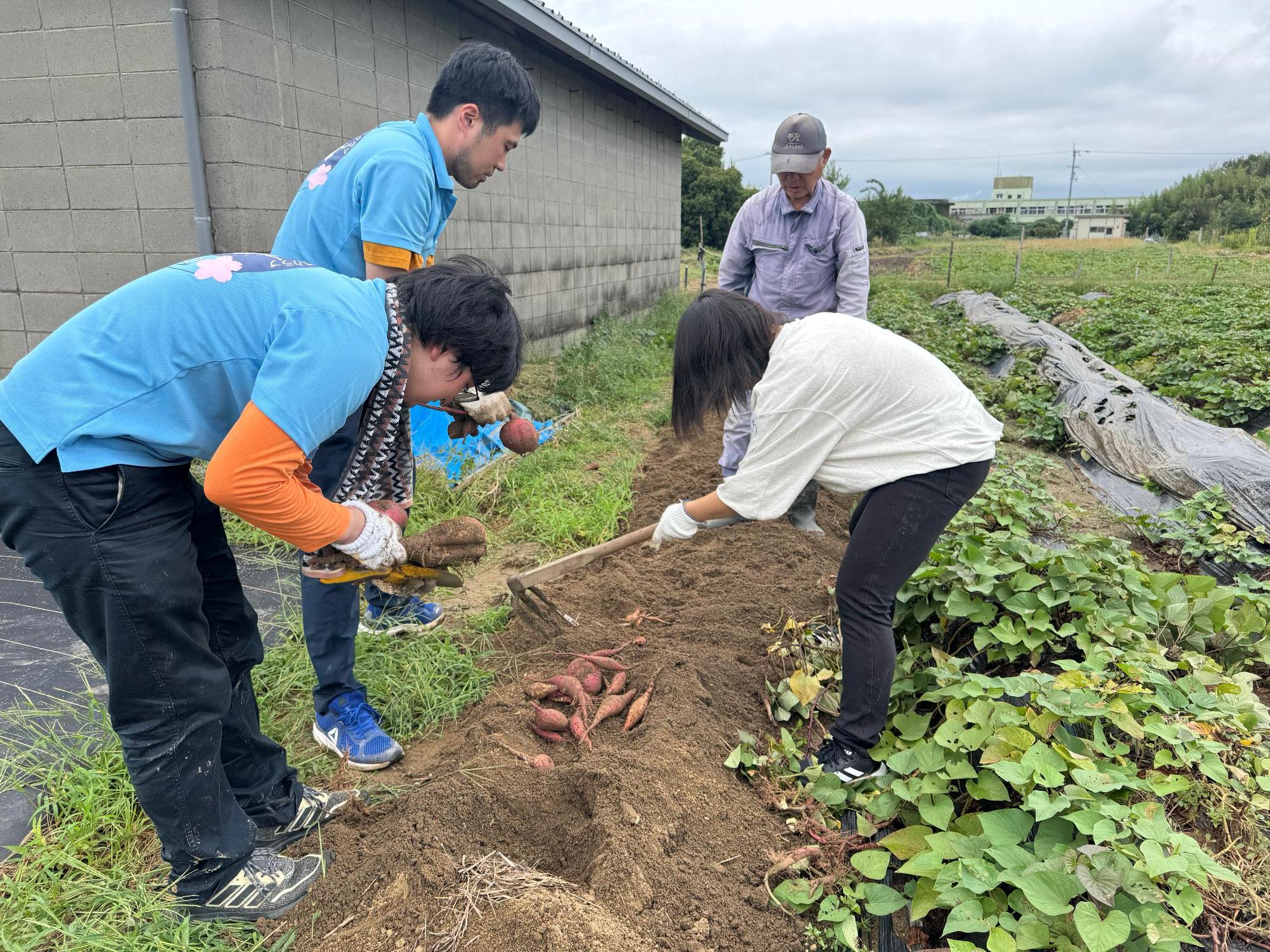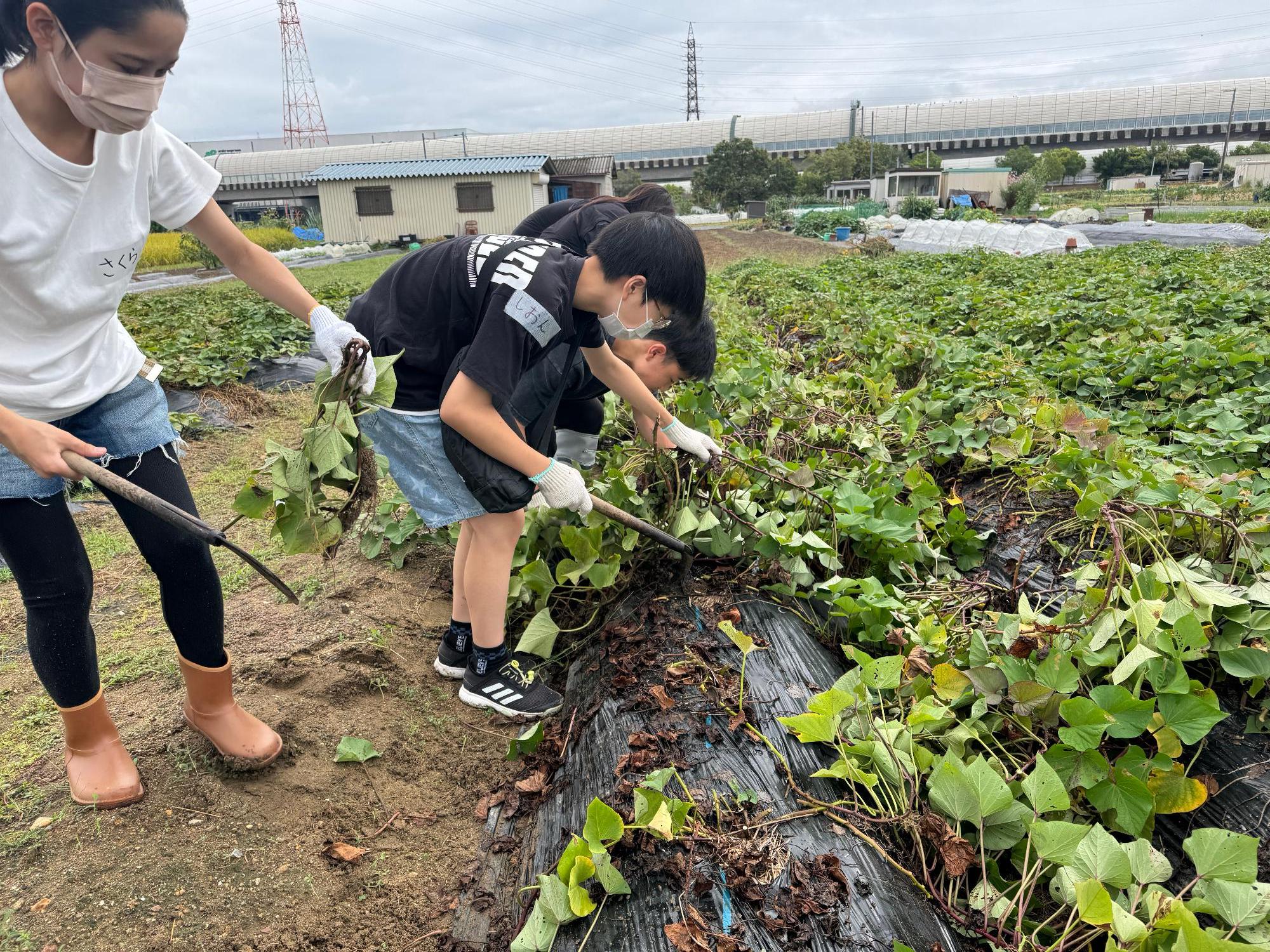 天候の良い中、5月に植えたさつまいもの収穫作業体験をさせていただきました。
