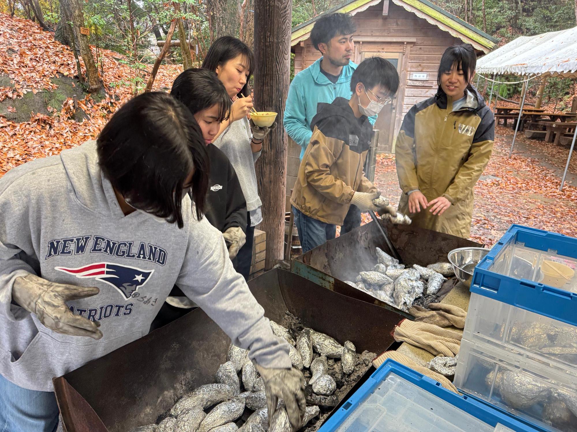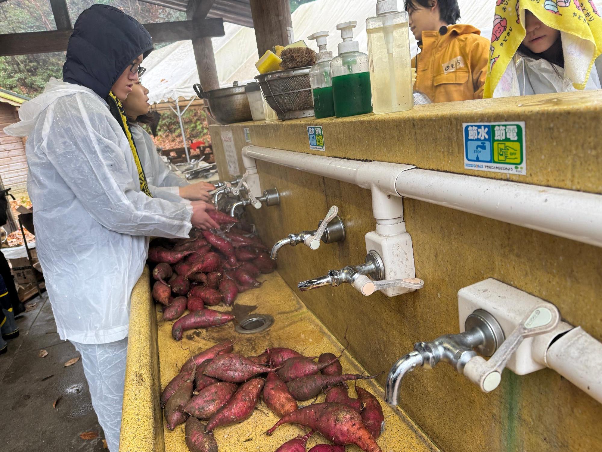 焼き芋で使用したさつまいもは、中高生クラブが収穫したものです。