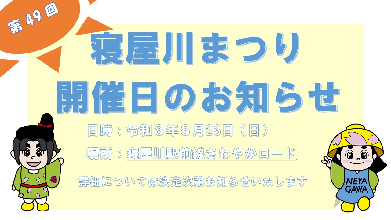 詳細については、寝屋川まつり実行委員会で決定次第お知らせいたします。