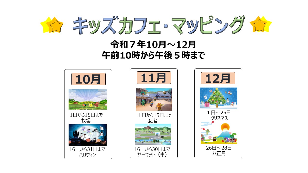 テーマ:10月 牧場とハロウィン、11月 忍者とサーキット、12月 クリスマスとお正月