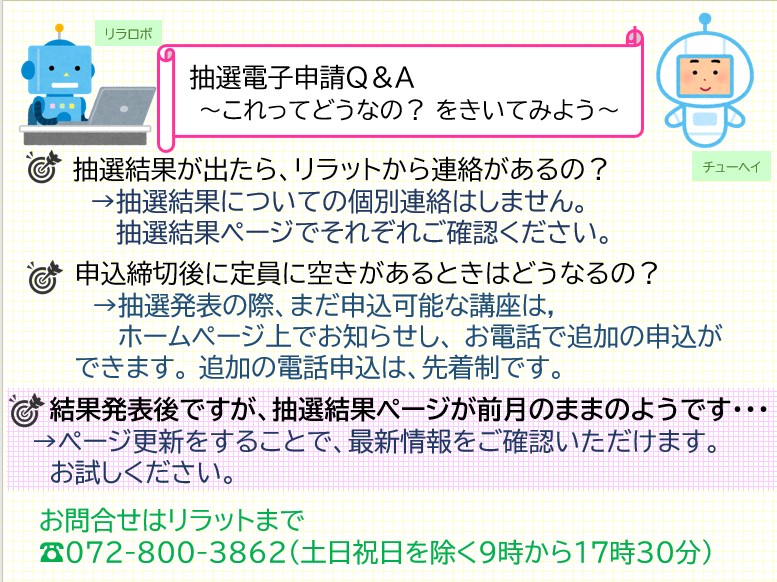 ※リラットから 抽選結果の個別連絡はしません。各自でご確認ください。