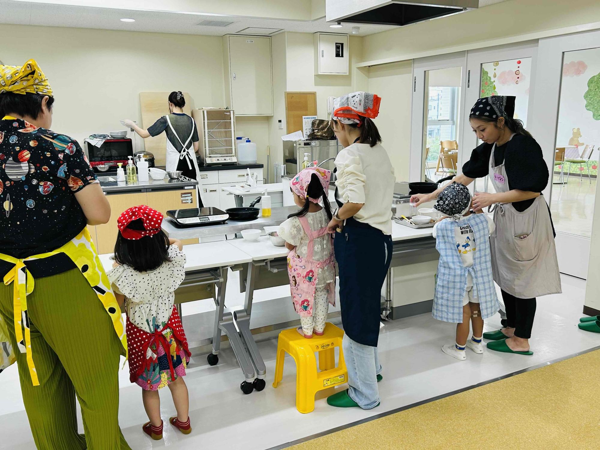 持ち物:飲み物、親子のエプロンと三角巾、手拭きタオル、あればお子様の上靴